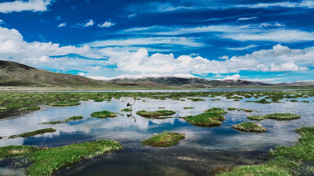 青海省玉树藏族自治州玉树市境内的隆宝滩湿地位于长江源头地区,这里水草丰美,是候鸟迁徙路线上的关键驿站与繁殖地。今年五月监测显示,当地吸引了包括斑头雁、黑颈鹤在内的37种鸟类在此栖息繁衍,斑头雁种群规模达5626只,幼鸟已随亲鸟蹒跚学步;珍稀的黑颈鹤也观测到94只,其中21对正辛勤抱窝,孕育着新的生命。