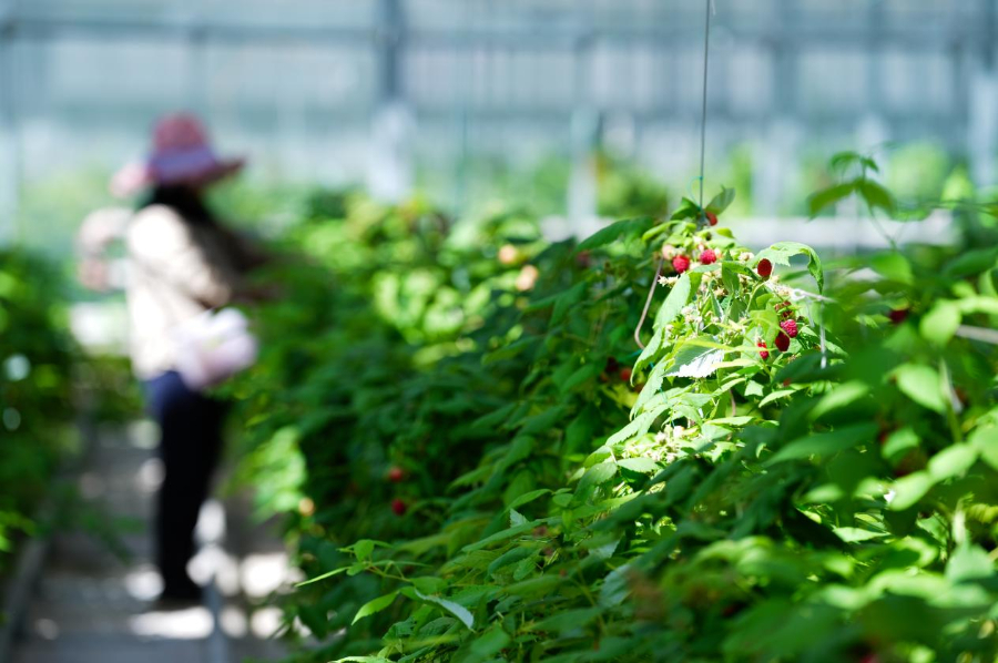 8月12日,菜农在循化县“黄河彩篮”现代农业产业园内忙碌。新华社记者 张龙 摄