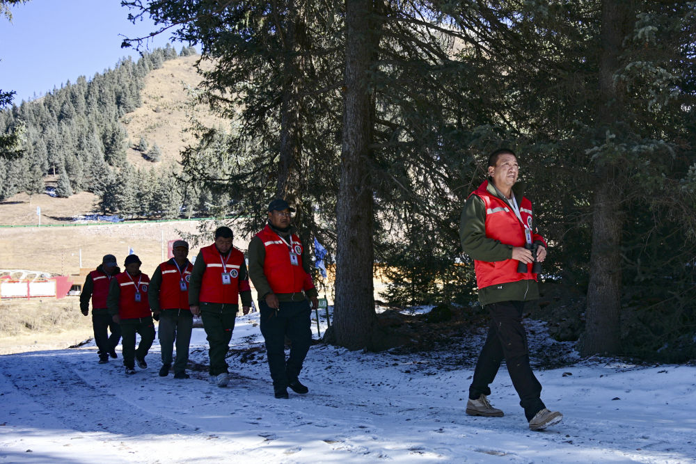 11月8日,护林员在青海省海北藏族自治州祁连县阿咪东索林区内出发巡林。
